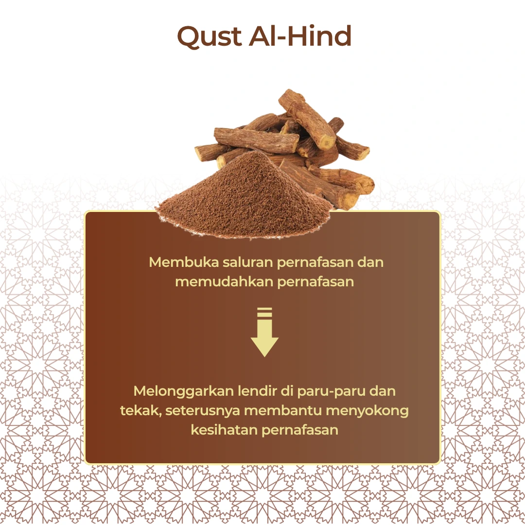 Hasil dari inovasi gabungan antara perubatan moden dan perubatan islam memudahkan untuk kita dapat segala khasiat dan kebaikan Qust Al-Hind dengan mudah