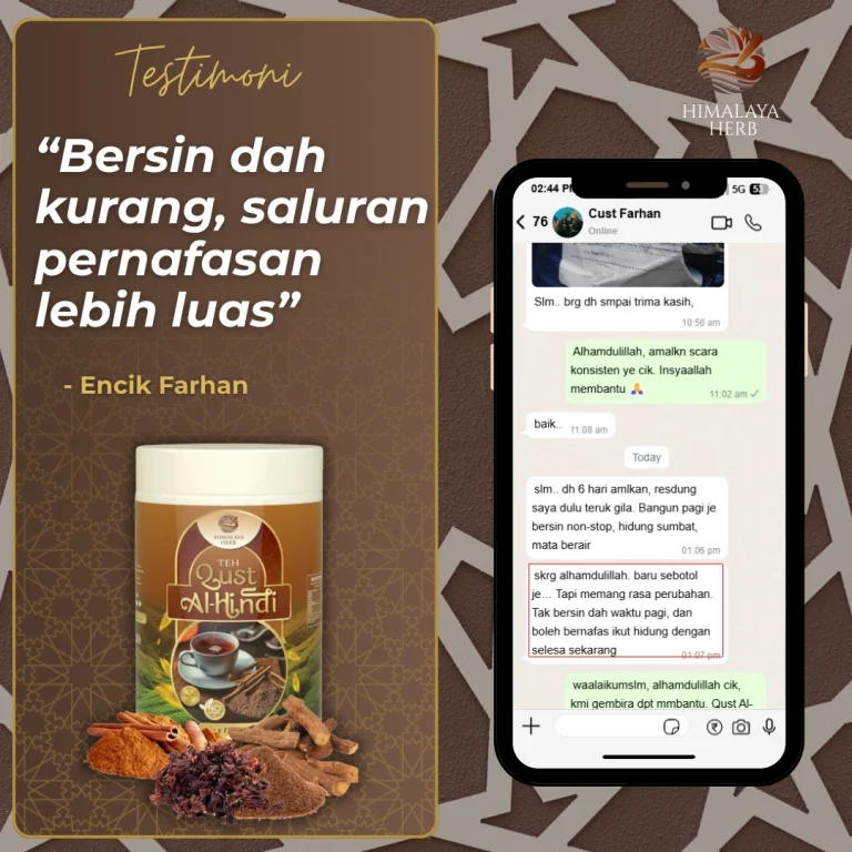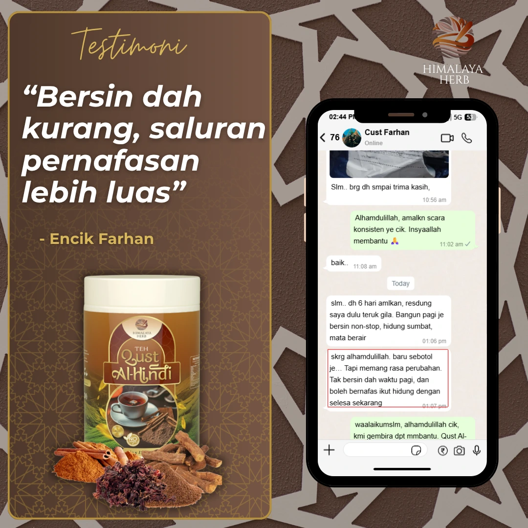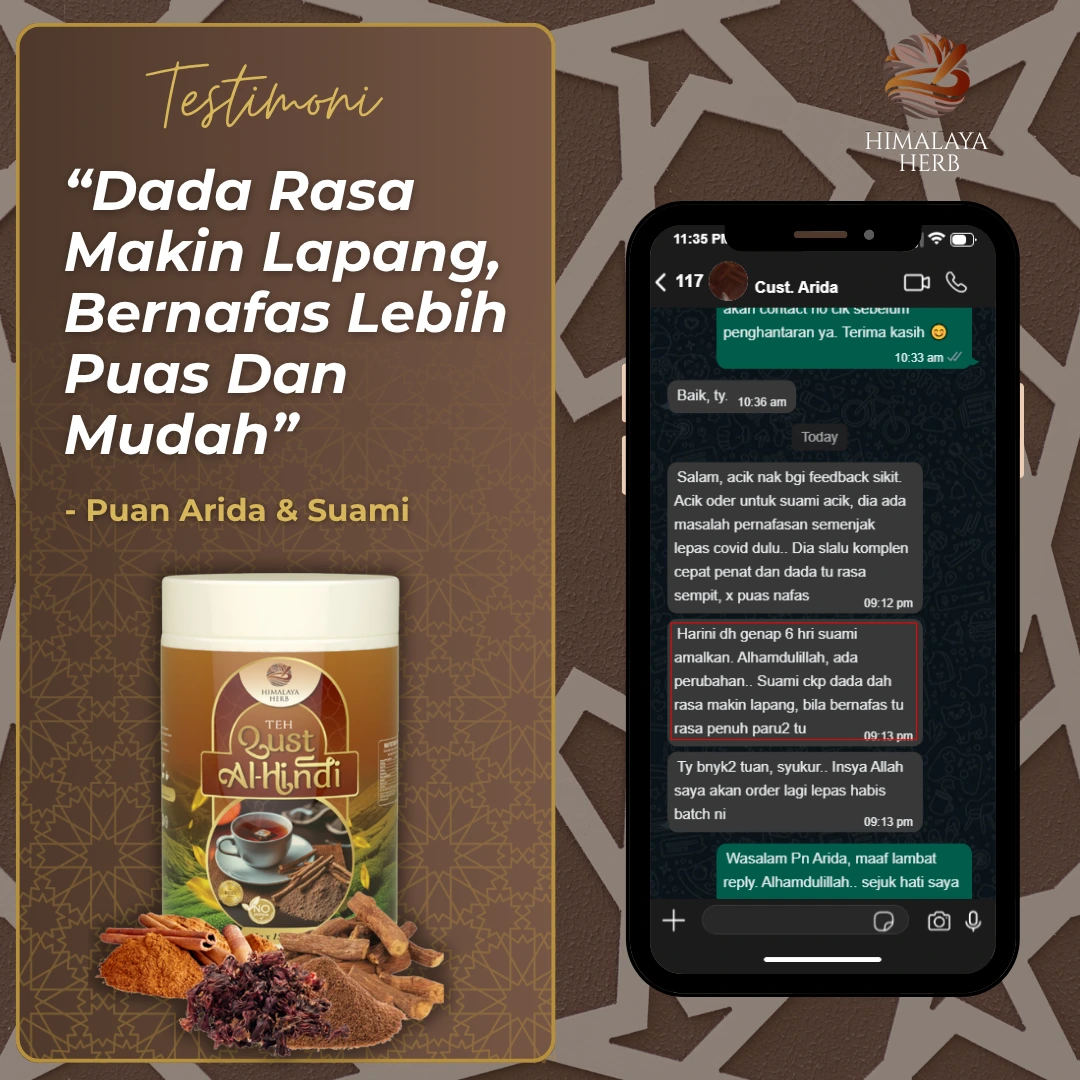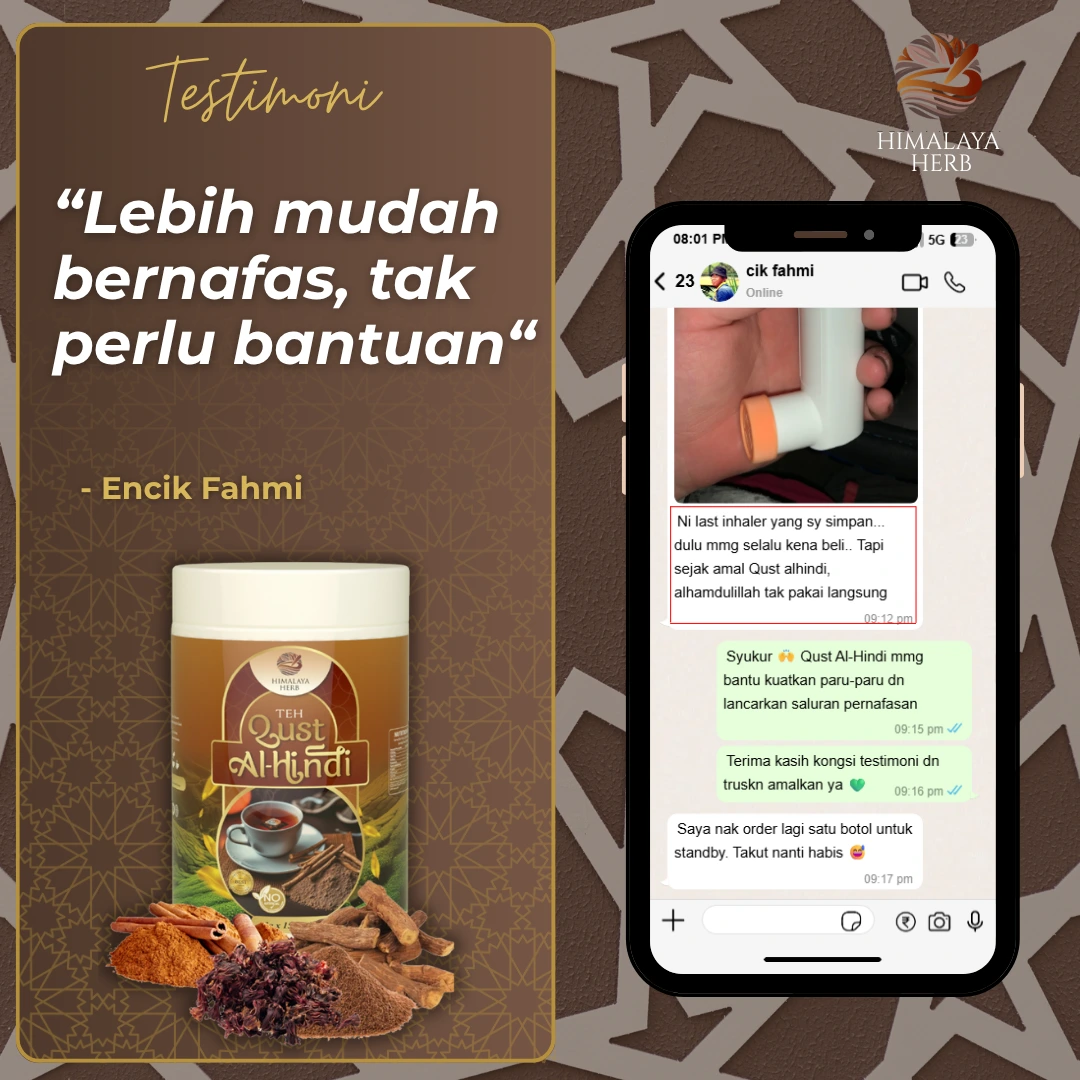 Masalah Cepat letih, Nafas tersekat & Batuk Berpanjangan Beransur Mudah Dengan Teh Qust Al Hind Himalaya Herb. Terbukti 7x Lebih Berkesan Dari Jenis Teh herba yang Lain